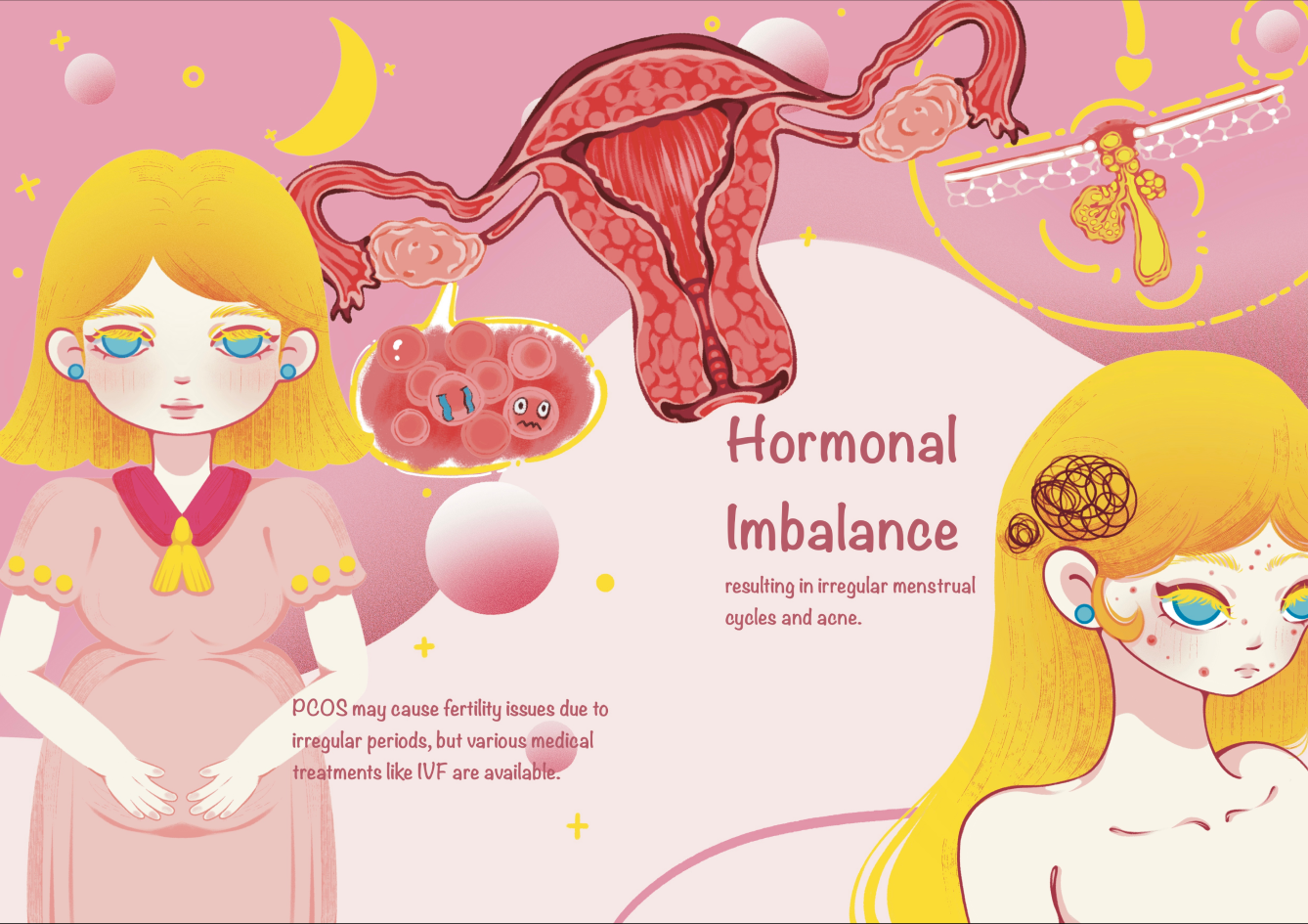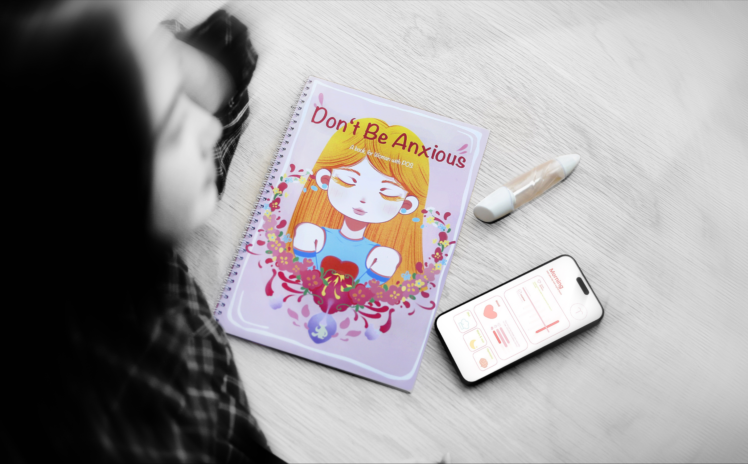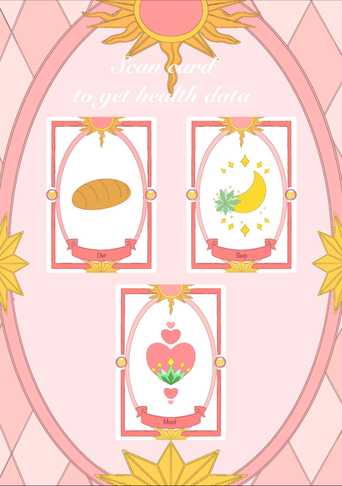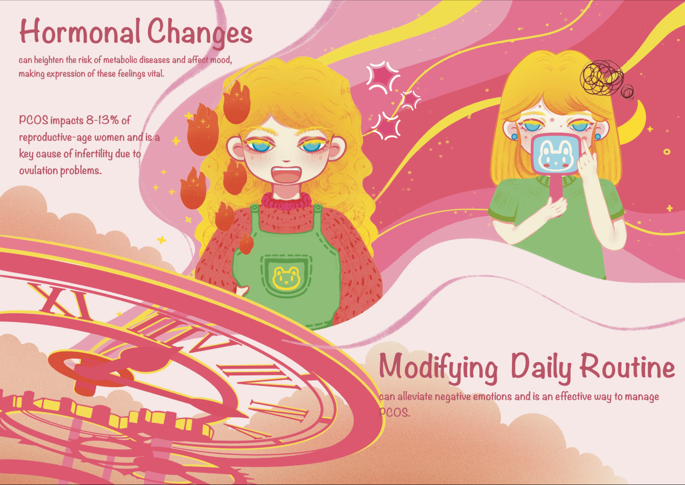 I created a picture book that uses illustrations to succinctly explain PCOS causes and treatment options. The final page features three tarot-like cards, allowing users to periodically assess their mental, dietary, and sleep health.