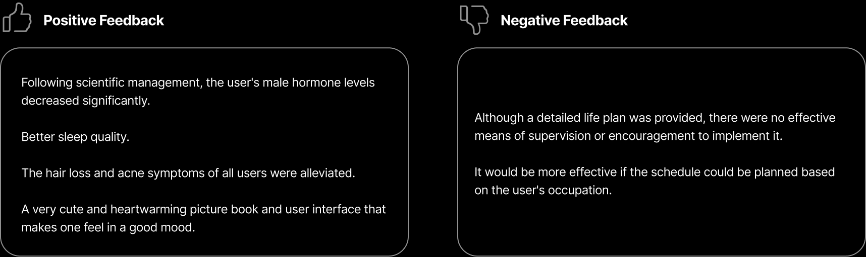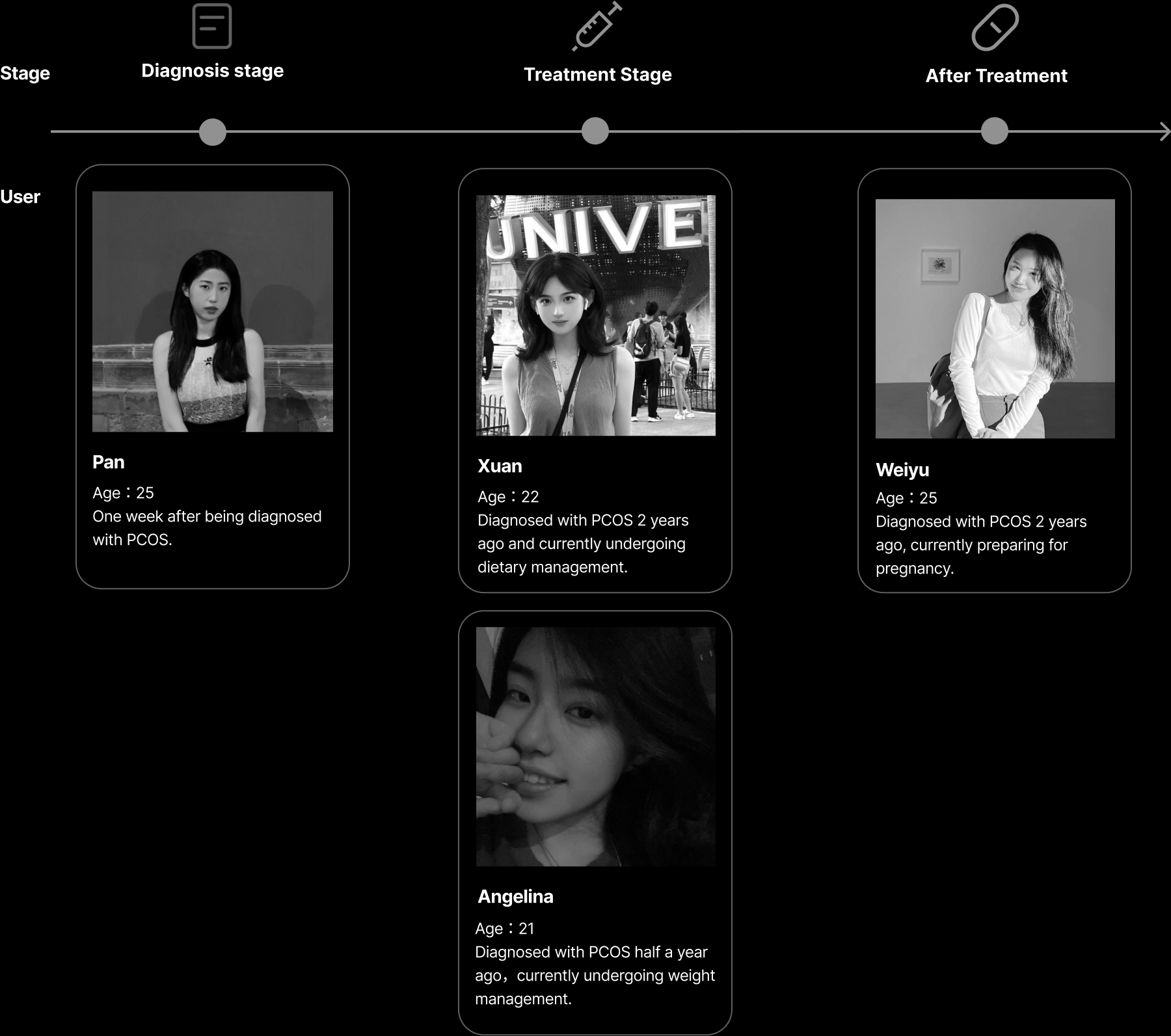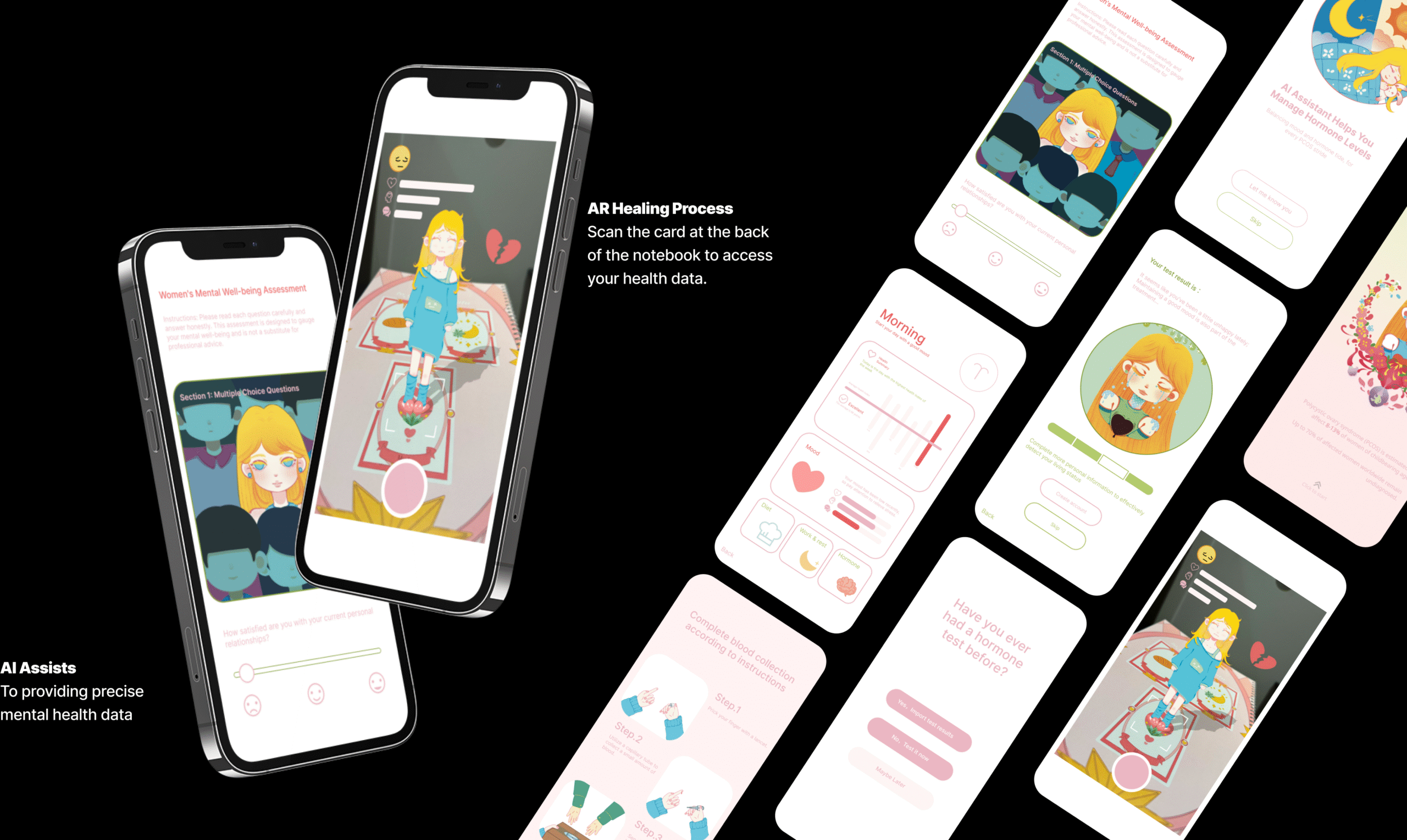 I created a picture book that uses illustrations to succinctly explain PCOS causes and treatment options. The final page features three tarot-like cards, allowing users to periodically assess their mental, dietary, and sleep health.