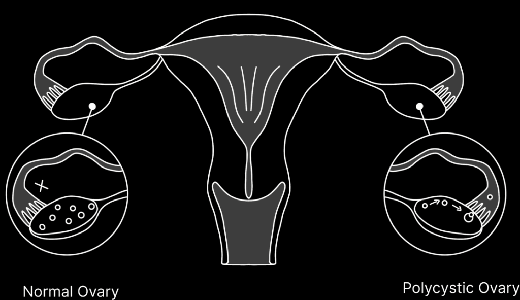 In PCOS, ovaries produce too many androgens, causing ovarian cysts and menstrual issues. This hormonal imbalance triggers various PCOS symptoms.