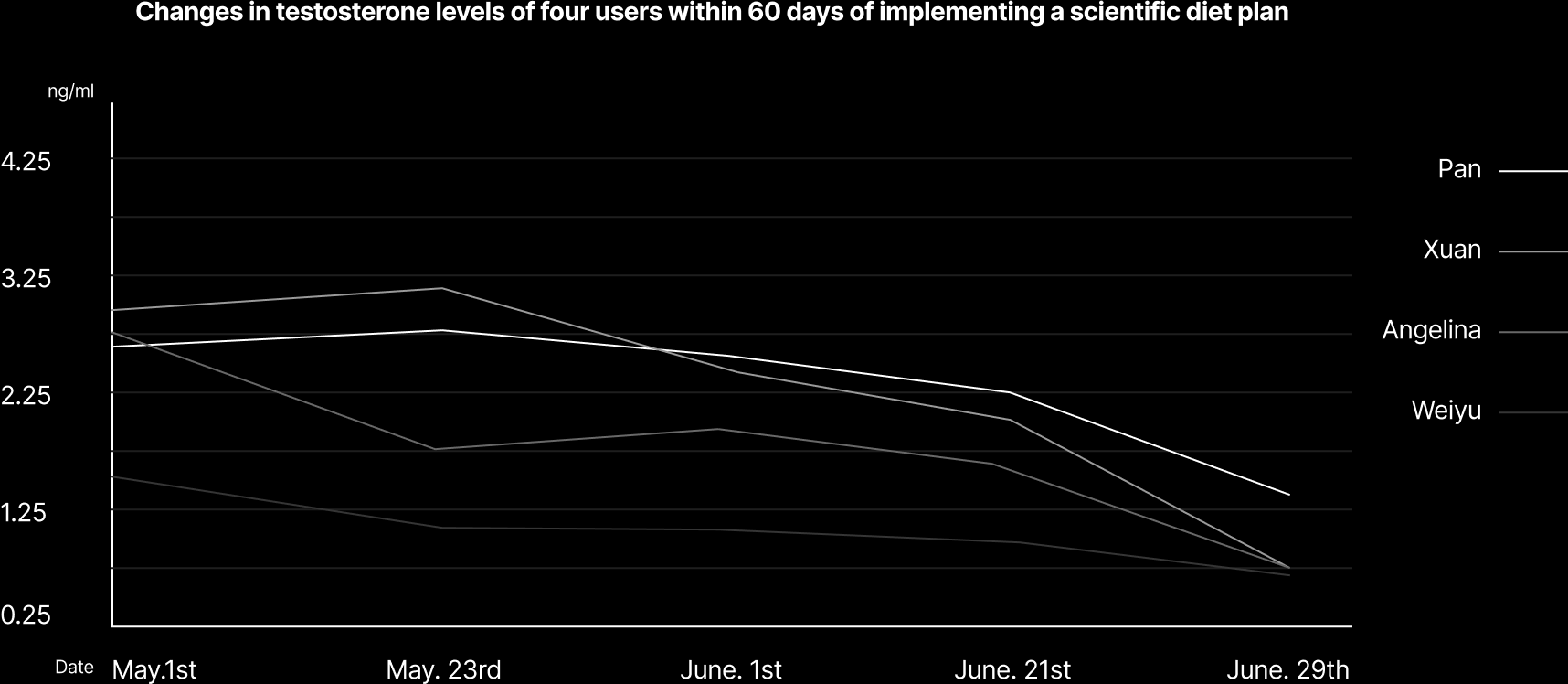 After following my 60-day health plan, 4 user at varying treatment stages exhibited significant improvements in their hormone levels.